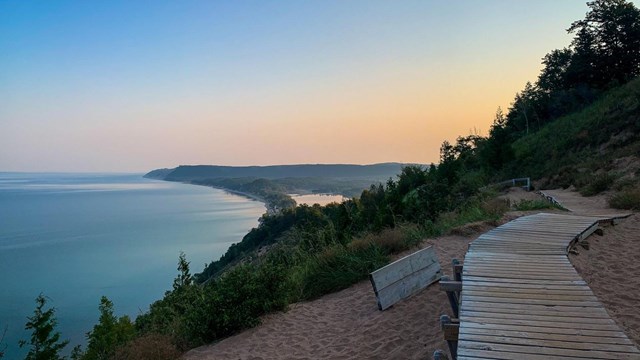 The Sleeping Bear Dunes National Lakeshore was established in 1970 to protect the unique natural features of the area around Empire. This national park, which includes the Manitou Islands, protects 65 miles of shoreline and over 71,187 acres of the largest freshwater dune system in the world. Park headquarters are located at the Philip A. Hart Visitor Center in Empire.